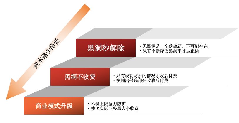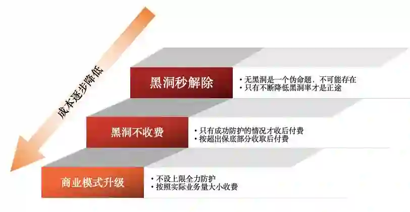 阿里云的一直致力于在降低客户使用成本的同时提升产品能力。在五年前的安全市场上,客户防御300G DDoS攻击的费用需要上百万,而今天,成本已经下降了数十倍,并且可以实现自助购买。在成本降低的同时,阿里云承诺实现无限抗,目标是帮助用户有效防住DDoS攻击,而不是单纯的以防御流量模式售卖产品。
