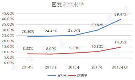 2017年,中国国旅总体毛利率增长较快,净利润也终于突破两位数。