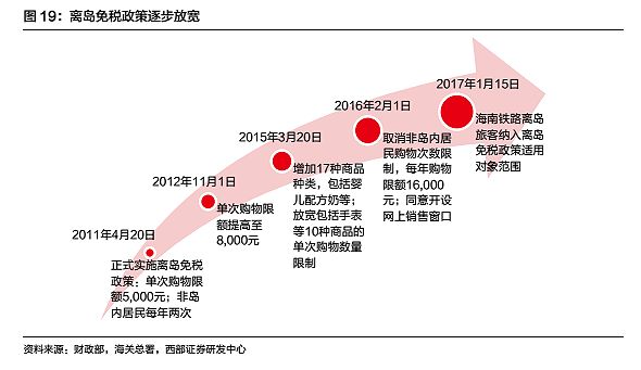 丰富的旅游资源为海南免税产业的发展提供了独天得厚的条件,国家也不断出台政策加以扶持,在购物限额、覆盖商品、购物次数等方面不断加码。