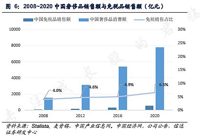 根据Statista 和麦肯锡预测 ,2020年,我国的奢侈品消费额将达7812亿元,免税销售额为507亿元,复合增长率为18%,免税占比为6.5%。