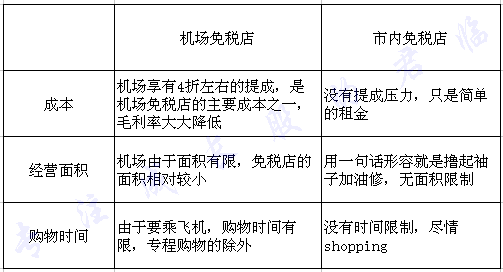 通过与机场免税店分析对比,市内免税店具有以下优势: