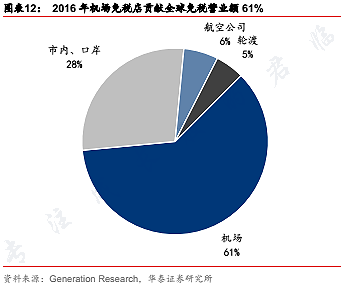 根据Generation Research 统计,从全球来看,机场免税额的占比达61%,其次就是市内、口岸免税店,占28%。