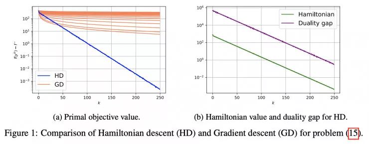 的Hamiltonian 下降(HD)和梯度下降算法的对比情况