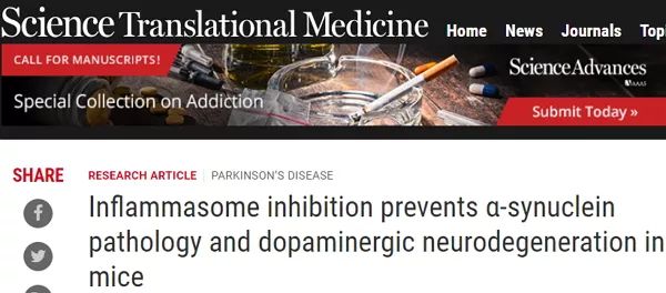 发表于《Science Translational Medicine》期刊的这一最新研究由昆士兰大学的科学家们完成。他们以PD小鼠为模型证实,α-突触核蛋白累积会促进大脑小胶质细胞发生炎症反应。而口服抗炎药可以改善小鼠的运动机能,减缓神经炎症、损伤以及α-突触核蛋白累积。