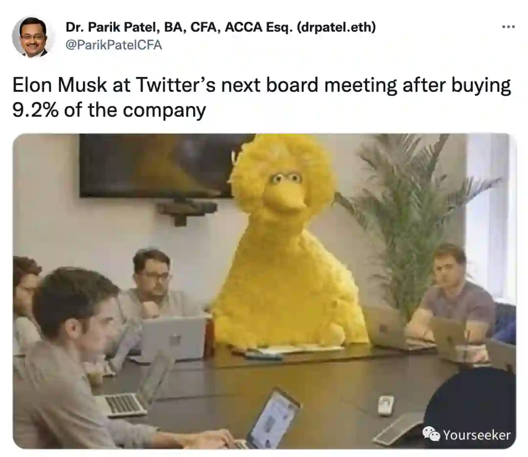 得meme者得天下!马斯克买下Twitter 9.2%股份,成最大股东
