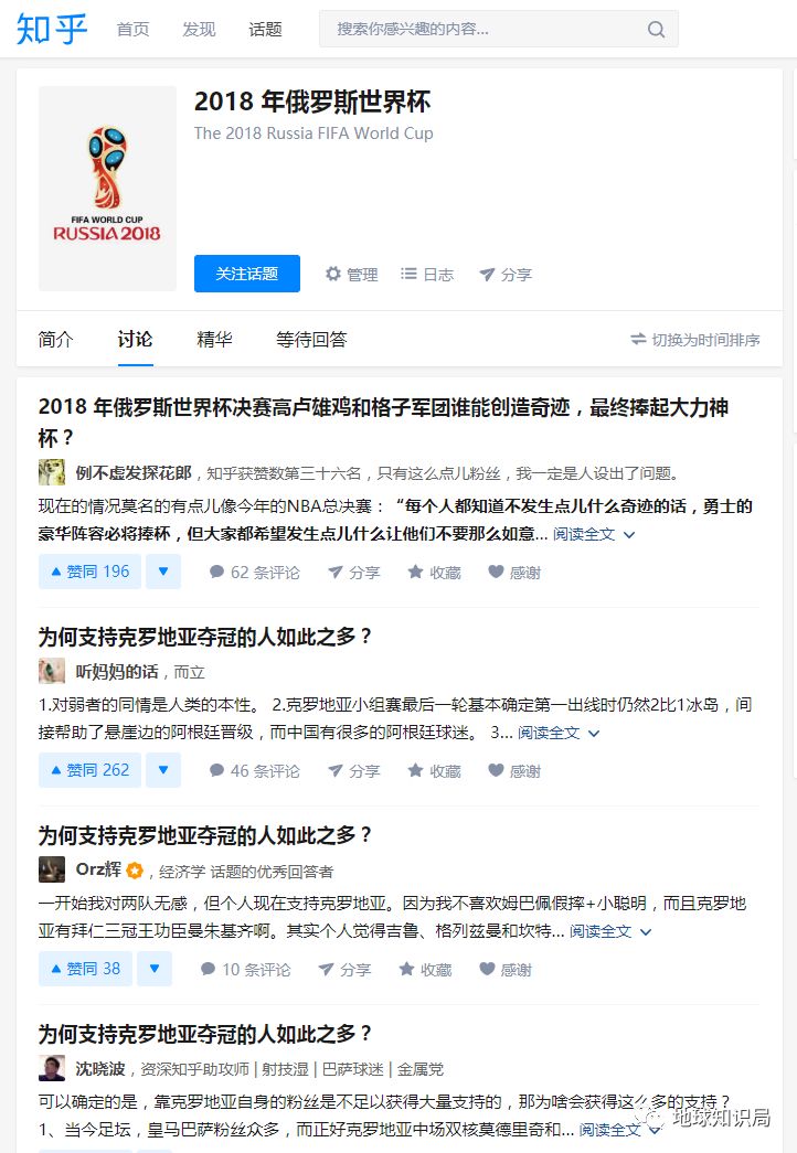 而世界杯本身,也确实能够激发人们对东道主和参赛国家情况的兴趣,以至于一些平日里的冷门小国在世界杯期间成为众人补课的对象,并在知乎中引出大量讨论。