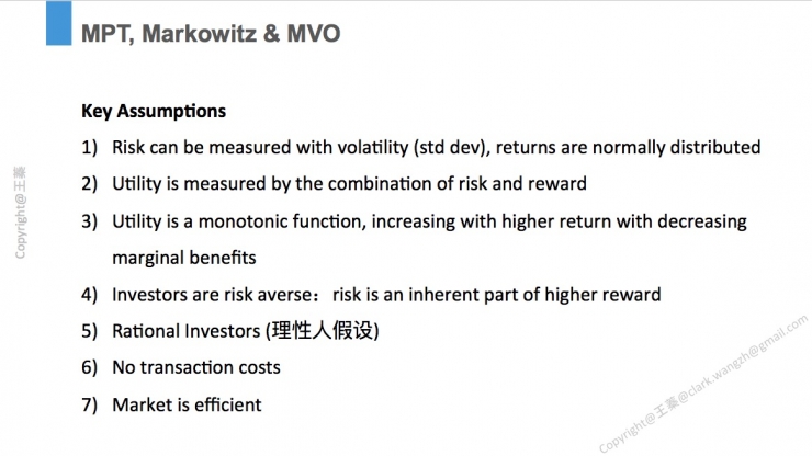还有一个理性人假设,以及没有投资费用和有效市场假设等等。