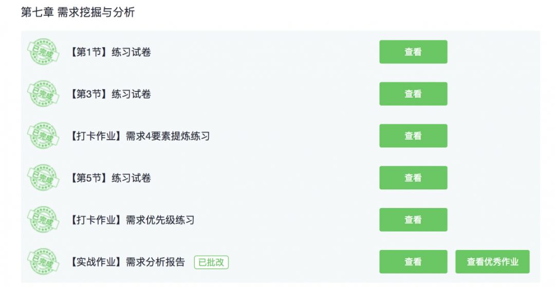 其次用实战作业检验成果。光说不练假把式,每周布置的练习任务或实战作业,都和产品经理的日常工作紧密相关,从竞品分析、用户调研、需求挖掘与分析,到产品设计、原型交互设计、输出需求文档,做作业做到废寝忘食(班主任跟在屁股后面催),上交作业以后再得到老师的批改反馈,更能发现自己在学习中的不足,从而不断地去优化作业,反复思考以保证真正消化。