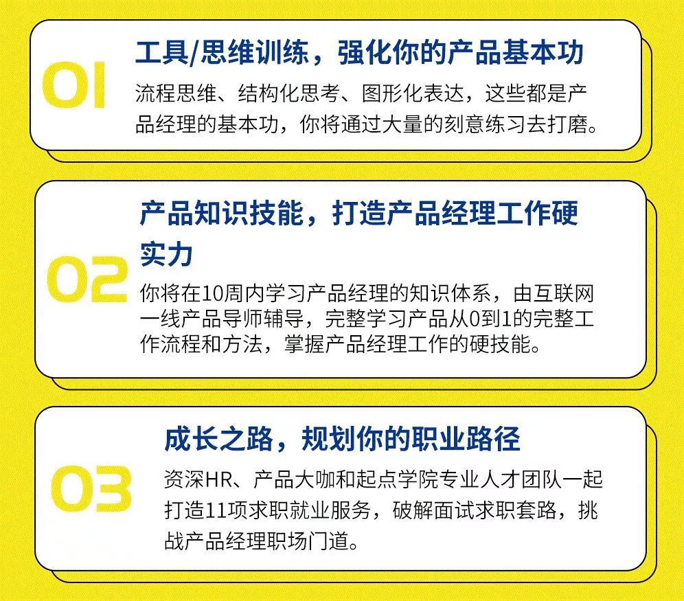 为了帮助产品新人在实践中少走点弯路,顺利完成产品小白到产品经理的蜕变,起点学院联合BAT导师推出针对产品新人的系统入门课程—— 产品经理就业特训营