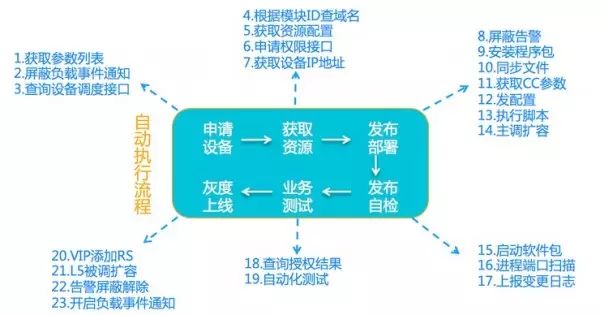 在团队内部有织云自动化部署平台,从申请设备获取资源、发布部署、检测,进行测试,上线。在每个环节还有些细节步骤,如申请设备的时屏蔽告警事件,如发布时同步传输文件、如发布后检测程序的包进程是否启动,启动之后进行业务测试。