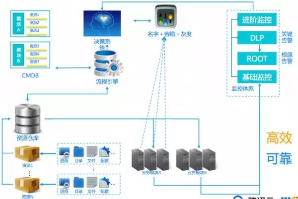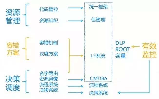 统一架构 CMDBA:把一个业务模块上所有依赖资源全部登记进去;同时如果做快速决策和调度,还需要有效的监控。