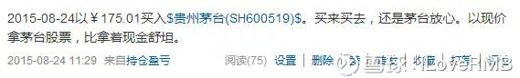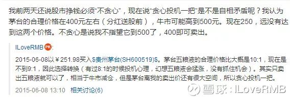 以前我笑话过否极泰的私募基金经理@董宝珍 先生,既然投资人把钱交给你,你全拿去买茅台,为什么他不自己去买茅台,还要给你交管理费和业绩提成。在茅台达到266的高位时,你作为研究了那么久的投资者,竟然还是那么执迷不悟,完全忽视了风险的存在。