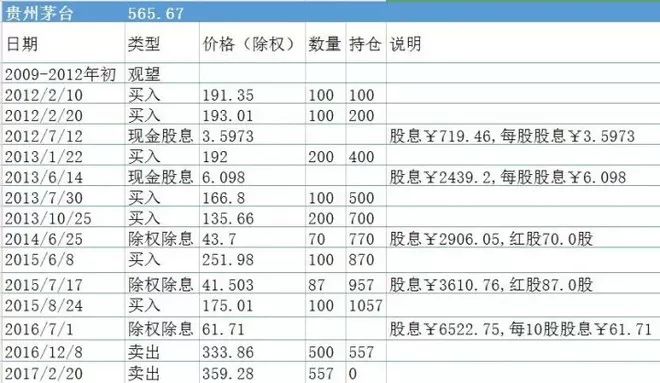 从09年至今年4月,我都是一个业余投资者,而茅台的投资历程也记录了当时的我对投资的理解(股价均为除权价):