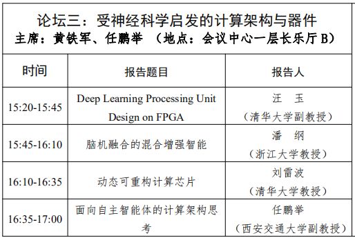 本次大会包含大会报告环节及4个大会专题论坛,共邀请了58位报告嘉宾。今天为大家介绍的是专题论坛三:受神经科学启发的计算框架与器件的两日详细日程与该专题论坛的11位报告专家(可点击阅读原文查看更多报告专家信息)。