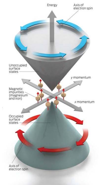 图5. 磁性掺杂在狄拉克点处打开带隙。取自文献[8]。
