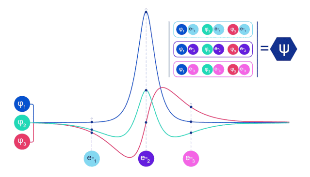 这些会被编码在波函数中,波函数给每个电子组态赋予一个正数或负数,波函数的平方给出了在这个组态中找到系统的概率。
