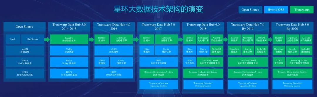 众所周知,Cloudera、Hortonworks 和 MapR 这三家公司都是 Hadoop 发行版公司,但是大家可能不知道星环科技最早在国内也是做 Hadoop 发行版,当时的技术架构组成为 HDFS+HBase+YARN+Spark,主要的客户群体是运营商,但是在做的过程中就发现项目同质化太严重了,客户项目开发的成本比较高,因此竞争非常激烈。