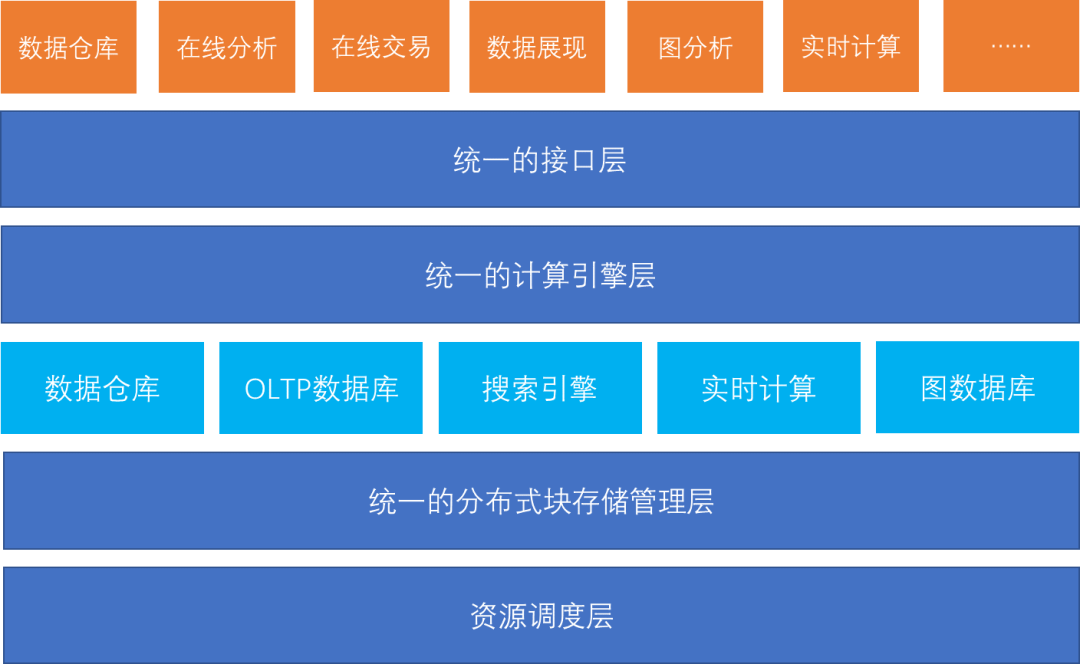 统一的分布式块存储管理层:过去的观点认为 HDFS 具有较好的通用性并在此之上搭载了各种引擎,实践证明 HDFS 无法实现高效的数据库,新一代的大数据体系需要一个统一的分布式块存储管理层,以支持不同的数据库类型。