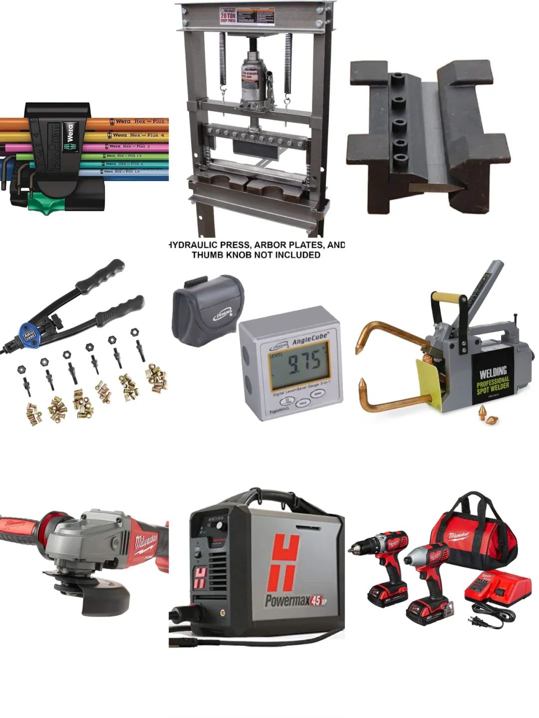 Wera allen keys 五金工具、马克笔、电焊机、铆接套件、AngleCube 数字量角器、压弯机、20 吨折弯机、无线角磨机、Powermax45 XP 专业级机用等离子切割系统等等。