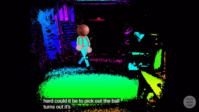 也就是说,当球打在篮板上的时候,篮板会自己调整角度,「想法设法」把球弹到篮筐里。它知道你的球从哪里来、何时来、轨迹是什么样的,因为整个房间都在它的「监控」之下。