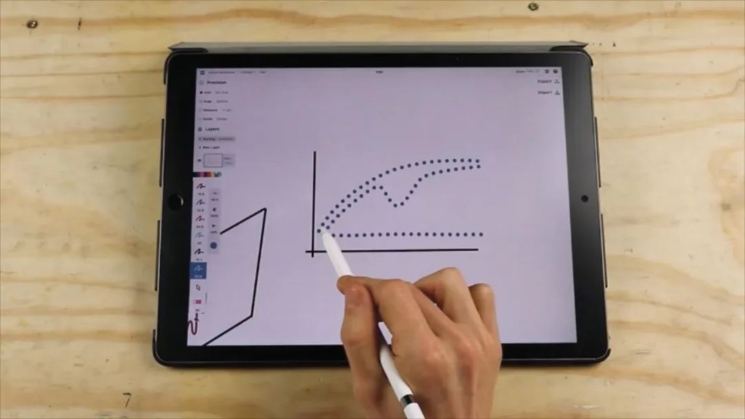 技术制图时,他使用了 13 英寸的 iPad Pro。