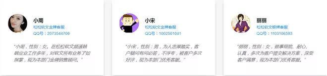 当然,这次网页首页的改版,也改变了以往的思路,以前是以产品介绍为主,而这次是以以人为中,以介绍客服为主,所以大家在任何页面都可以看到介绍,同时也可以看到我对所有客服的评语。