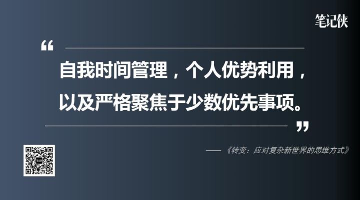 而成功管理的关键是每个人的个人有效性,有三点对你的个人有效性始终至关重要,而且它们是渐增的:自我时间管理,个人优势利用,以及严格聚焦于少数优先事项。