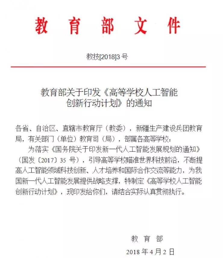 为了落实《新一代人工智能发展规划》,人才培养是关键。教育部在近日正式发布了《高等学校人工智能创新行动计划》。