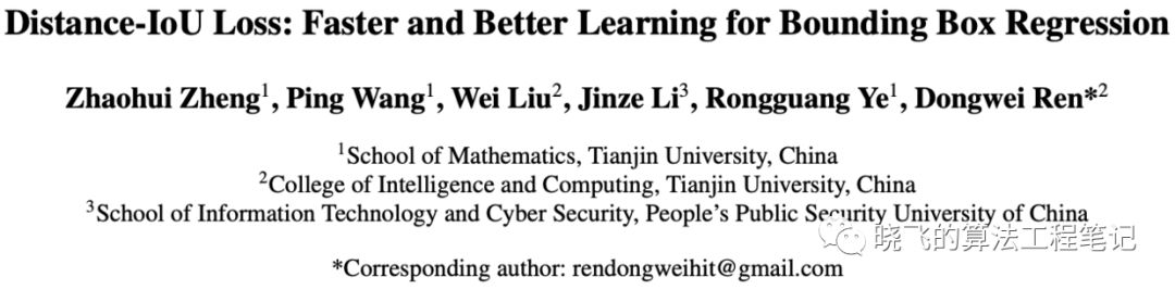 论文:Distance-IoU Loss: Faster and Better Learning for Bounding Box Regression