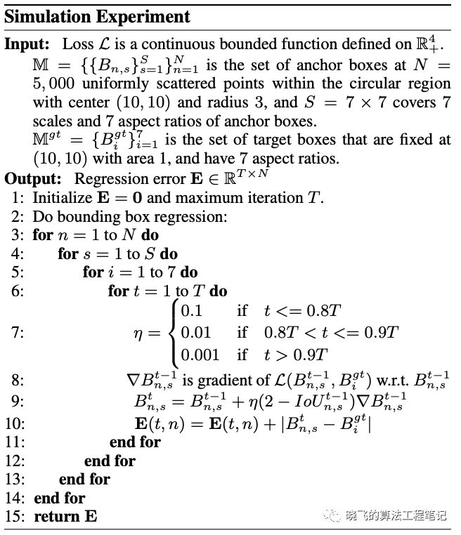 如图3所示,实验选择7个不同长宽比(1:4, 1:3, 1:2, 1:1, 2:1, 3:1, 4:1)的单元box(area=1)作为GT,单元框的中心点固定在(7, 7),而实验共包含5000 x 7 x 7个bbox,且分布是均匀的: