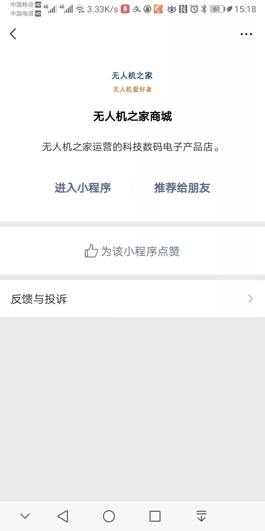 2、“无人机之家商城”小程序,销售各种硬件、软件、课程都可以,企业账号收款,结算快捷。