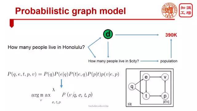 那么它是如何工作的呢?关键在于将自然语言问题转换为知识库上的结构化查询。例如,要回答“有多少人住在檀香山?”这个问题,我们需要将其转移到SPARQL或者SQL查询。 这里的关键问题是属性推断。