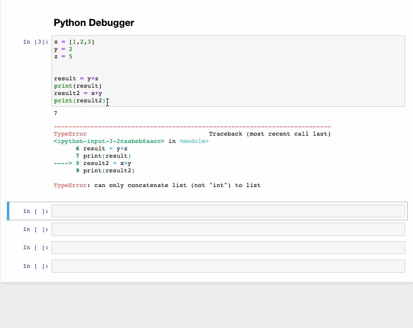 其次,我们可以轻松地调用python调试器,因为我们仍然在解释器中: