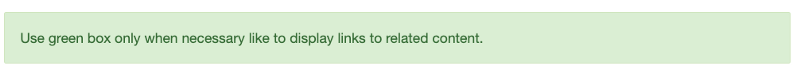 <div class="alert alert-block alert-success">Use green box only when necessary like to display links to related content.</div>