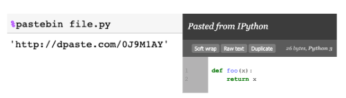 在Jupyter Notebook中使用%pastebin生成一个pastebin url。