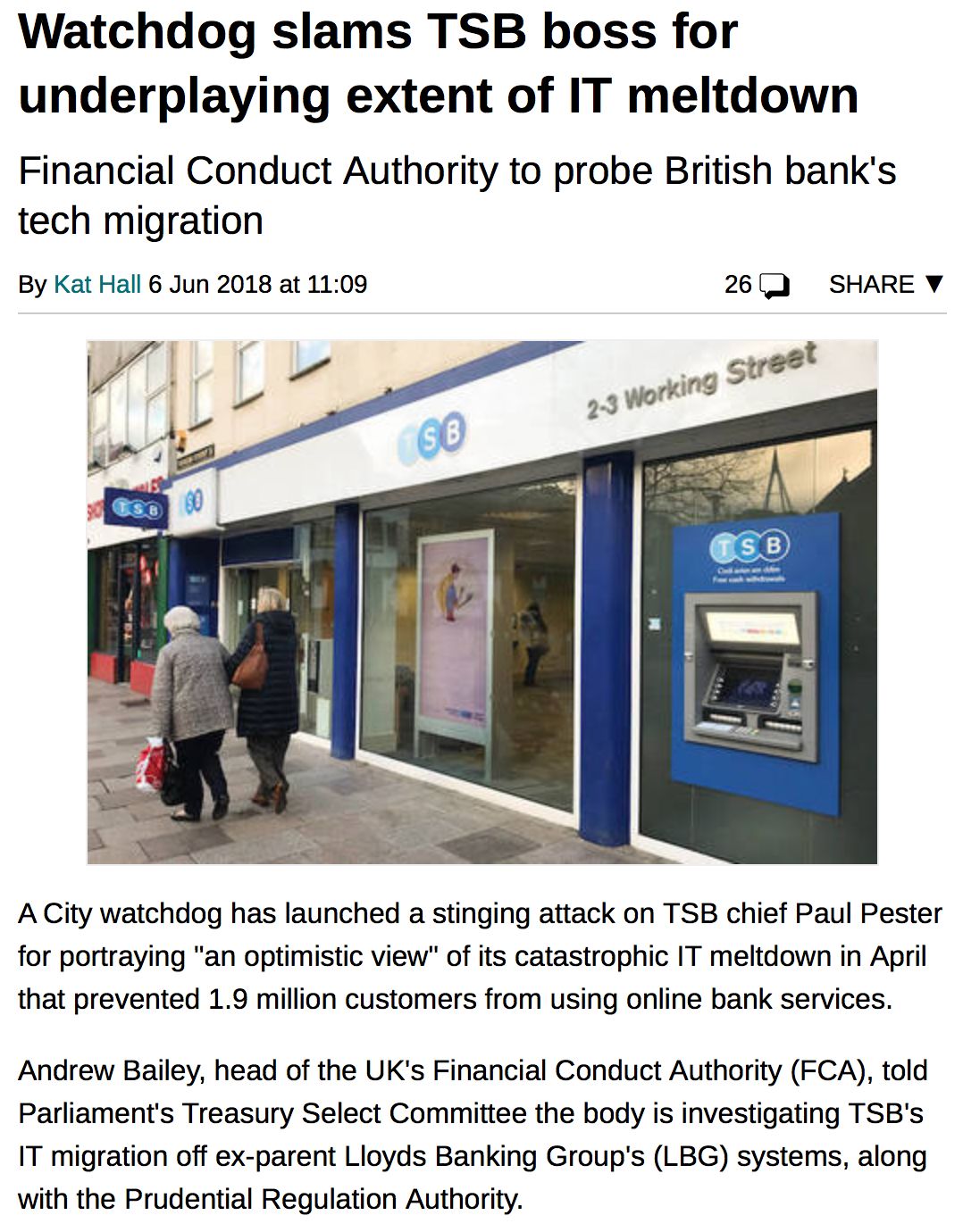 那次故障在6月1日星期五持续了大约10个小时,在欧洲酒吧消费者当中引发了恐慌,很显然,5120万笔交易中大约10%被拒绝。