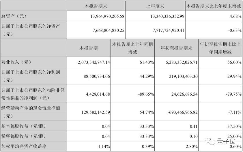 第三季度扣非净利润442.8万元,同比减少89.65%。而对于如此大幅的下降,科大讯飞解释说,主要原因是:一是当前正值人工智能产业爆发的关键窗口期,科大讯飞持续加大研发投入、生态构建投入和教育、政法、医疗、智慧城市等重点赛道的市场布局投入。相应地,前三季公司员工规模增长较快,新增人员当期薪酬、费用提升。