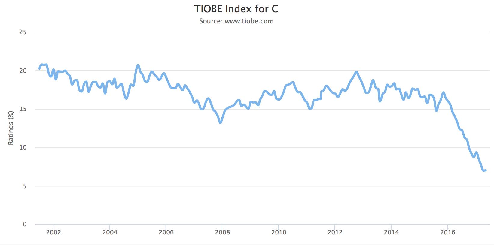 可以看到 java 和 c 出现了明显的下滑,排名虽然依然靠前,但评级都下跌了超过 6%