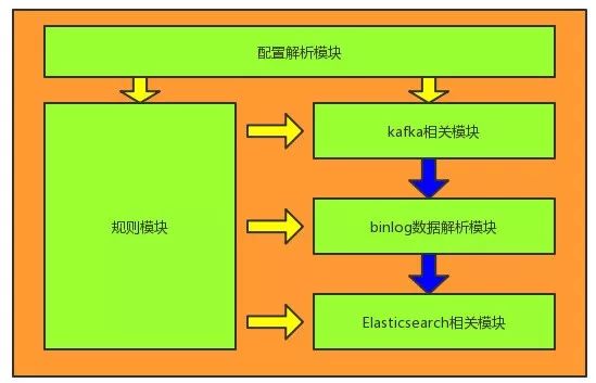 负责解析配置文件(toml 或 json 格式),或在配置中心(Skipper)配置的 json 字符串。包括 Kafka 集群配置、Elasticsearch 地址配置、日志记录方式配置、MySQL 库表及字段与 Elasticsearch 的 Index 和 Mapping 对应关系配置等。