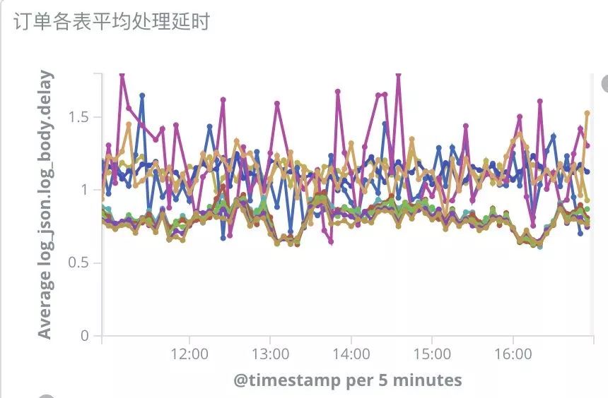从上图中可以看出,订单各个表的数据同步延时平均在 1s 左右。把延时数据接入 ElastAlert,在延时数据过多时发送报警通知。