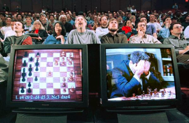 1996 年 2 月 10 日,超级电脑 Deep Blue 首次挑战国际象棋世界冠军 Kasparov 以 2:4 落败。1997 年 5 月再度挑战,最终Deep Blue 以 3.5:2.5 击败了 Kasparov ,成为首个在标准比赛时限内击败国际象棋世界冠军的电脑系统。
