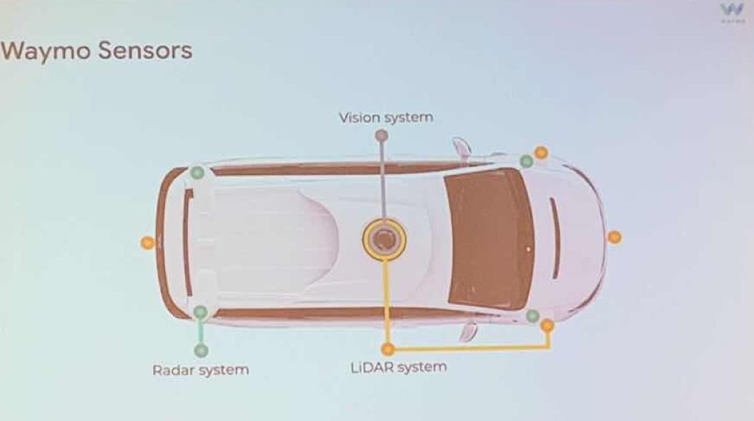 除了发布数据集,此次演讲也透露了 Waymo 的传感器配置,如下图所示,包括视觉系统、激光雷达系统和雷达系统。