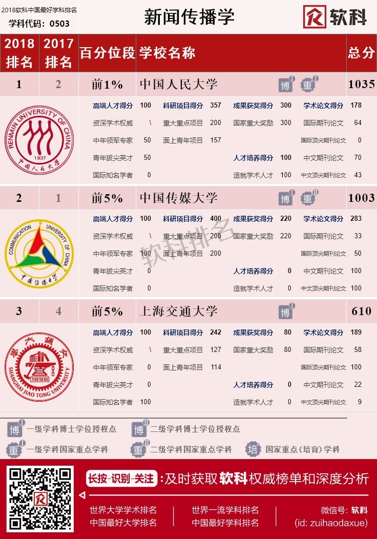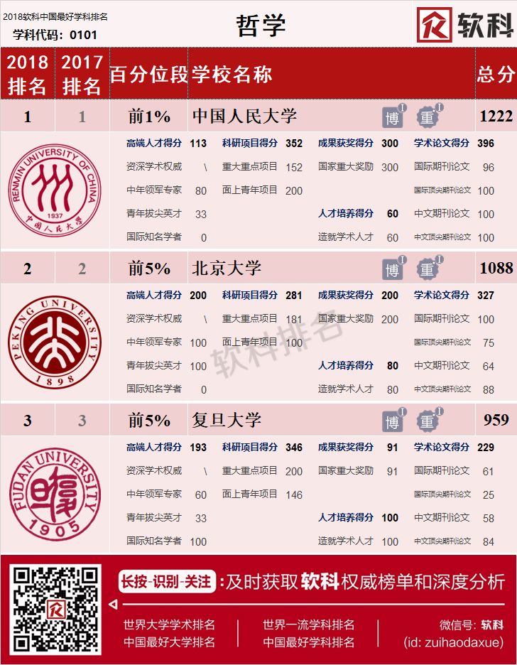 获取完整排名结果、排名方法、指标数据等更多信息,请关注微信公众号“软科”或访问软科旗下最好大学网(www.zuihaodaxue.com)。下载2018中国最好学科排名完整榜单,请长按识别下方二维码并关注微信公众号“软科”后,回复“2018BCSR”即可。
