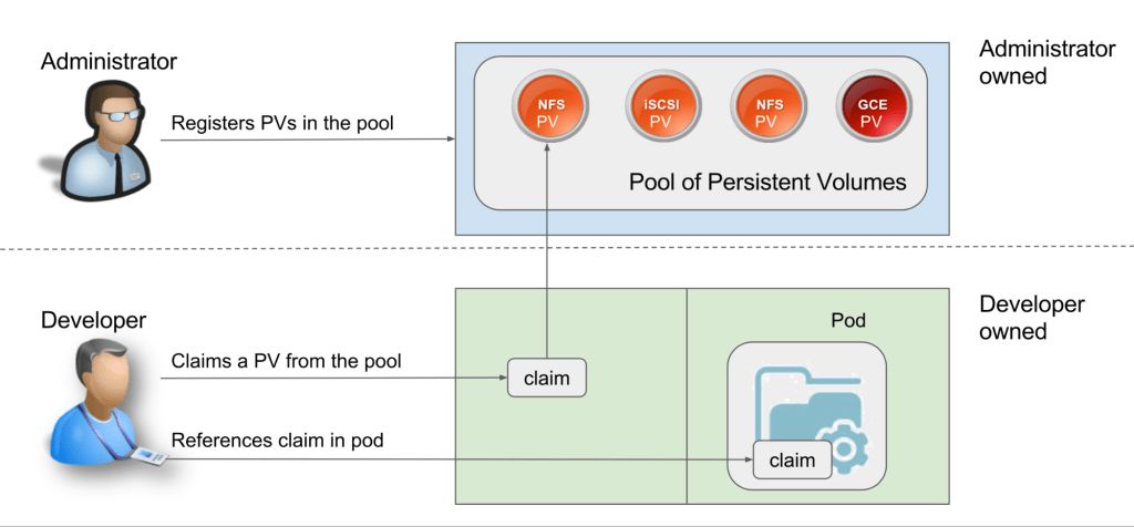 另一方面,持久卷声明是对存储资源——也就是持久卷——的需求。有了持久卷声明,我们就可以将存储与特定的节点绑定在一起使用。