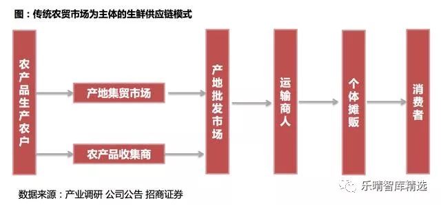 以农贸市场为中心的传统模式中间渠道多、效率低。