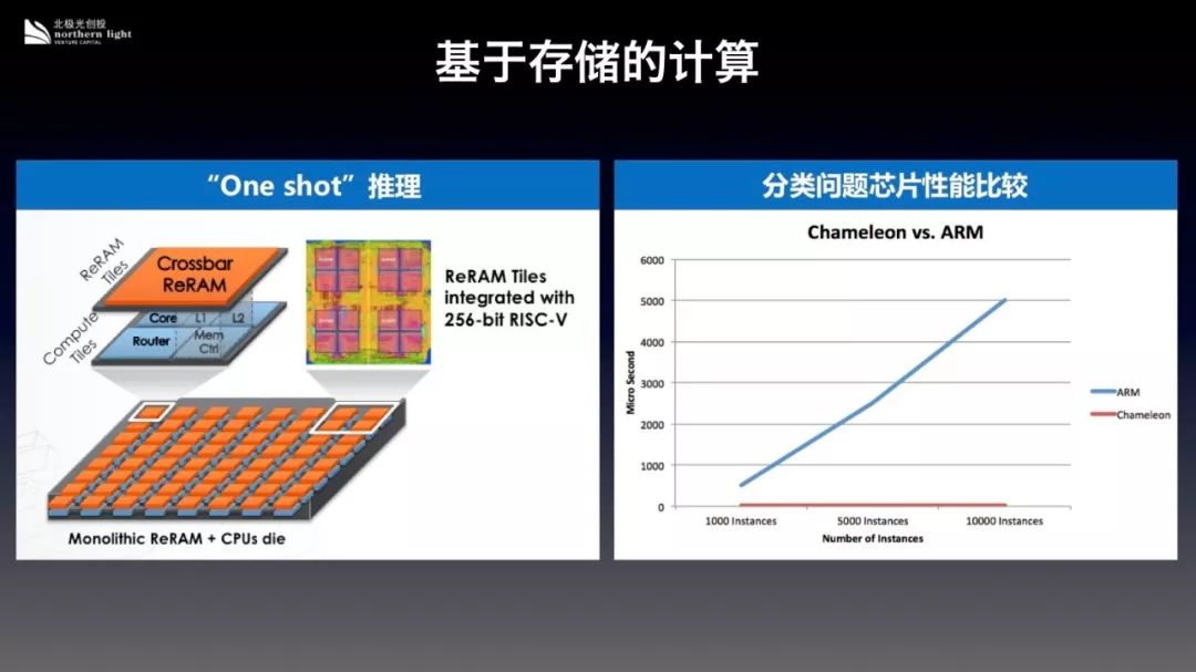 这个器件蓝色是逻辑电路,橙色是模拟电路,他们已经有一些demo的产品,可以展示怎么把一个逻辑器件和一个存储器件合二为一,十万张里面挑一张,还是一千里面挑一张,算的速度是一样的,所以更大的提升在基于存储的计算。也许是2019年,也许是2020年,但是我坚信基于存储的计算会发生。