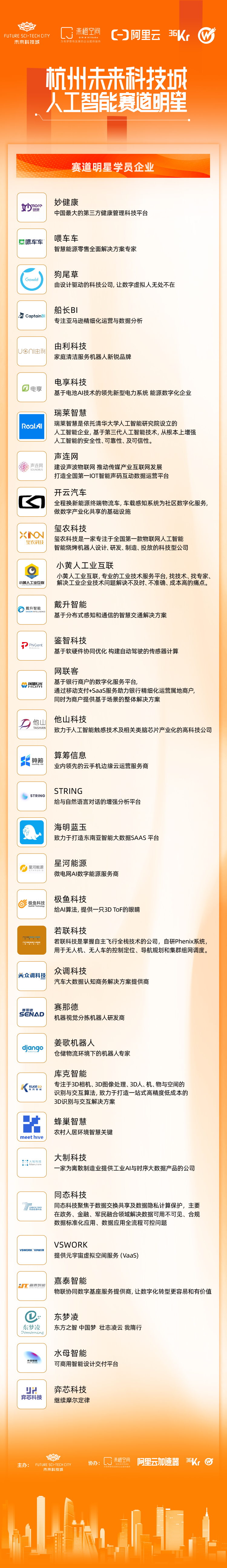 2月17日——19日,由杭州未来科技城(海创园)主办,橙云科技、阿里云、36氪联合杭州万骏企业管理有限公司共同协办的「杭州未来科技城人工智能赛道明星」在宁波二次集结。