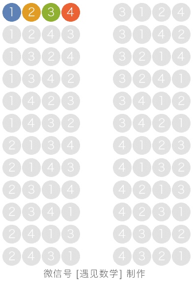 例如,从一到六的数字有720种排列。而上面 4 个物品排列动画如下: