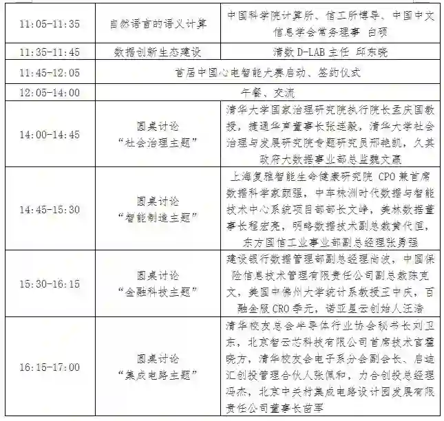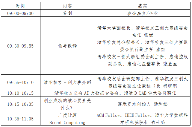 【拟定议程】活动由两部分组成,分别是“清华数据创新高峰论坛”及“优秀AI大数据企业对接会”。