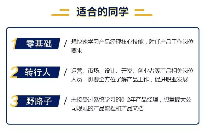 特别适合产品零基础、想转行的人,已经有3000人学完毕业了。有转产品想法的,不能错过这个高性价比的课程。